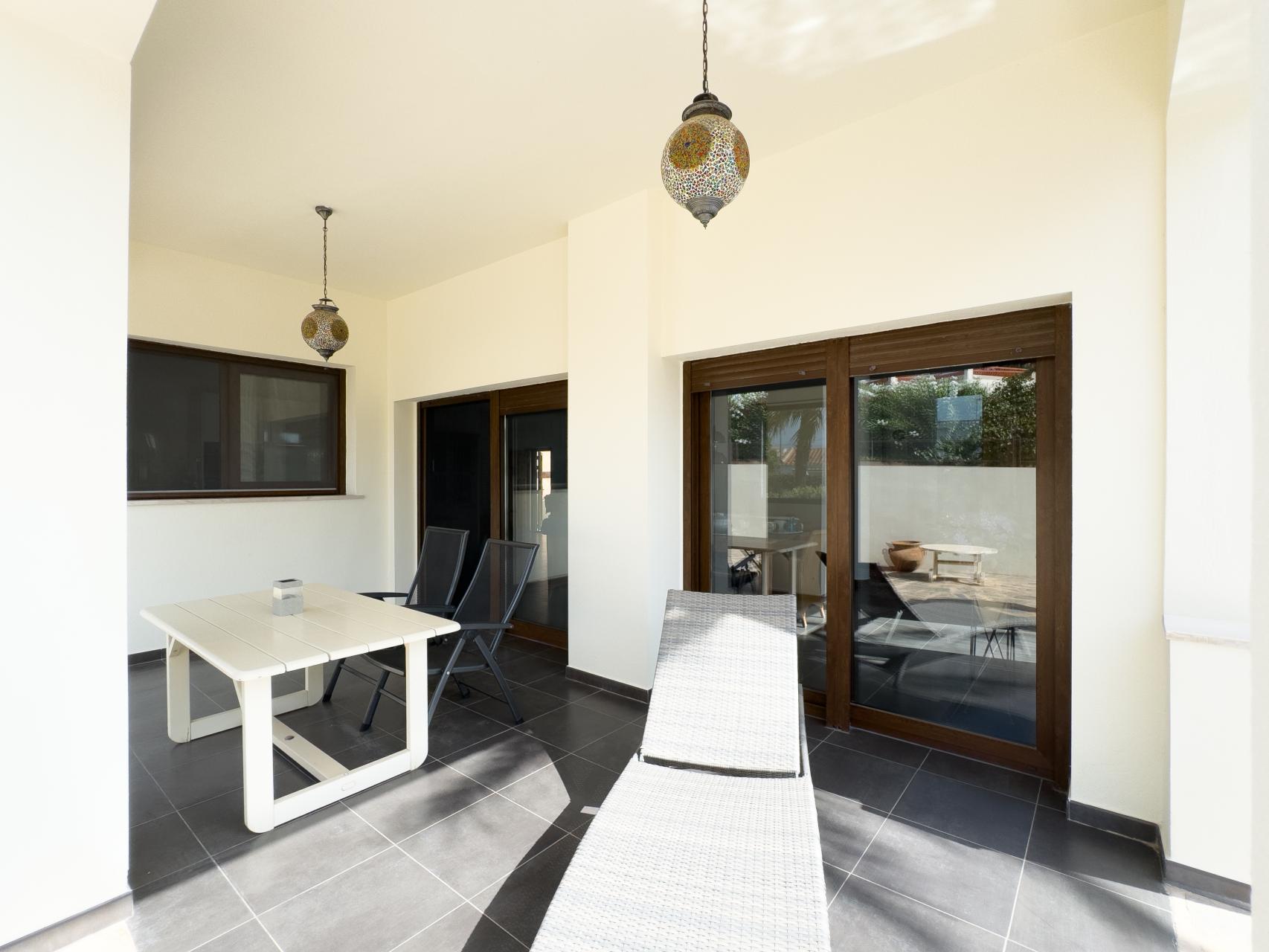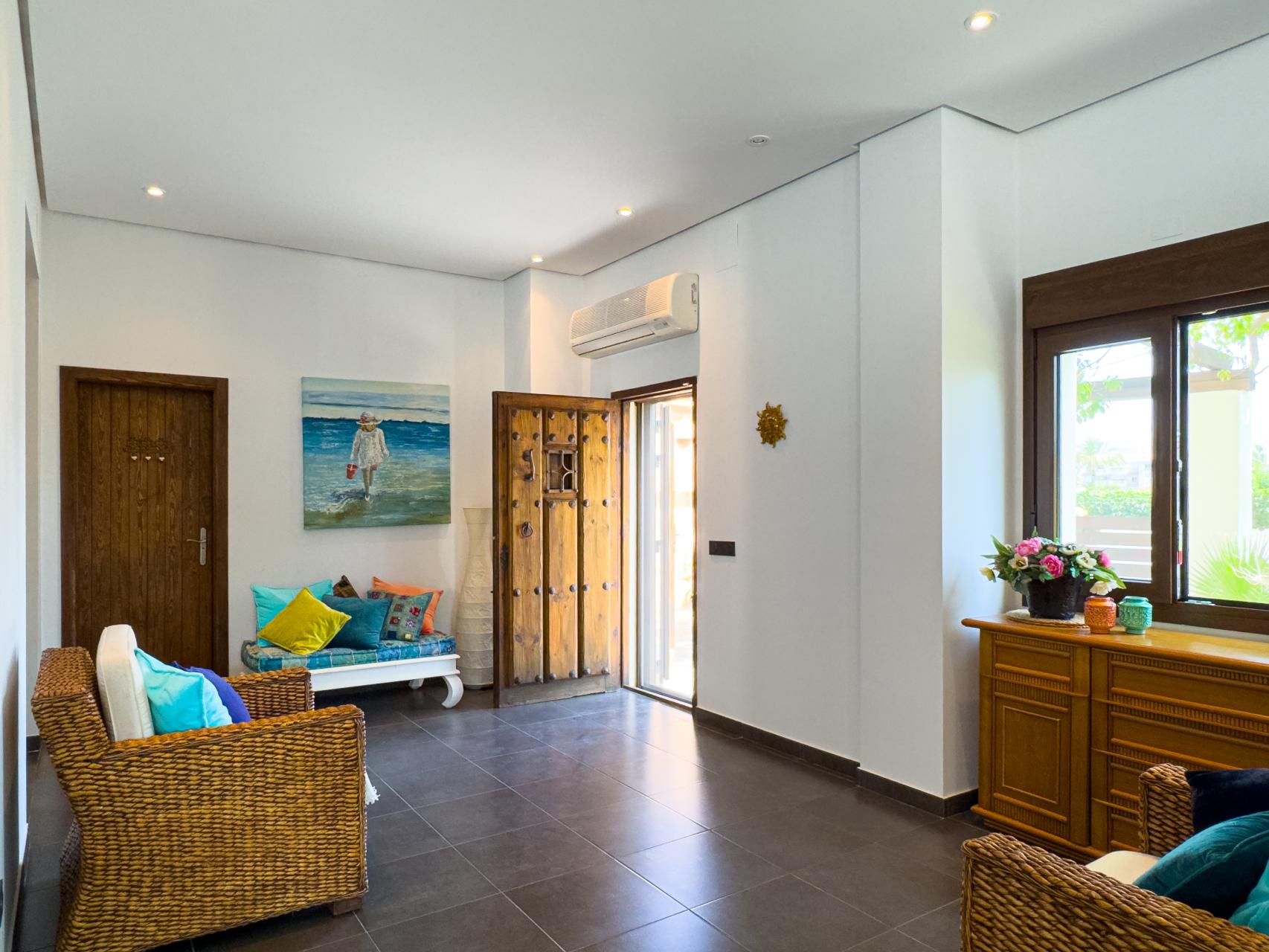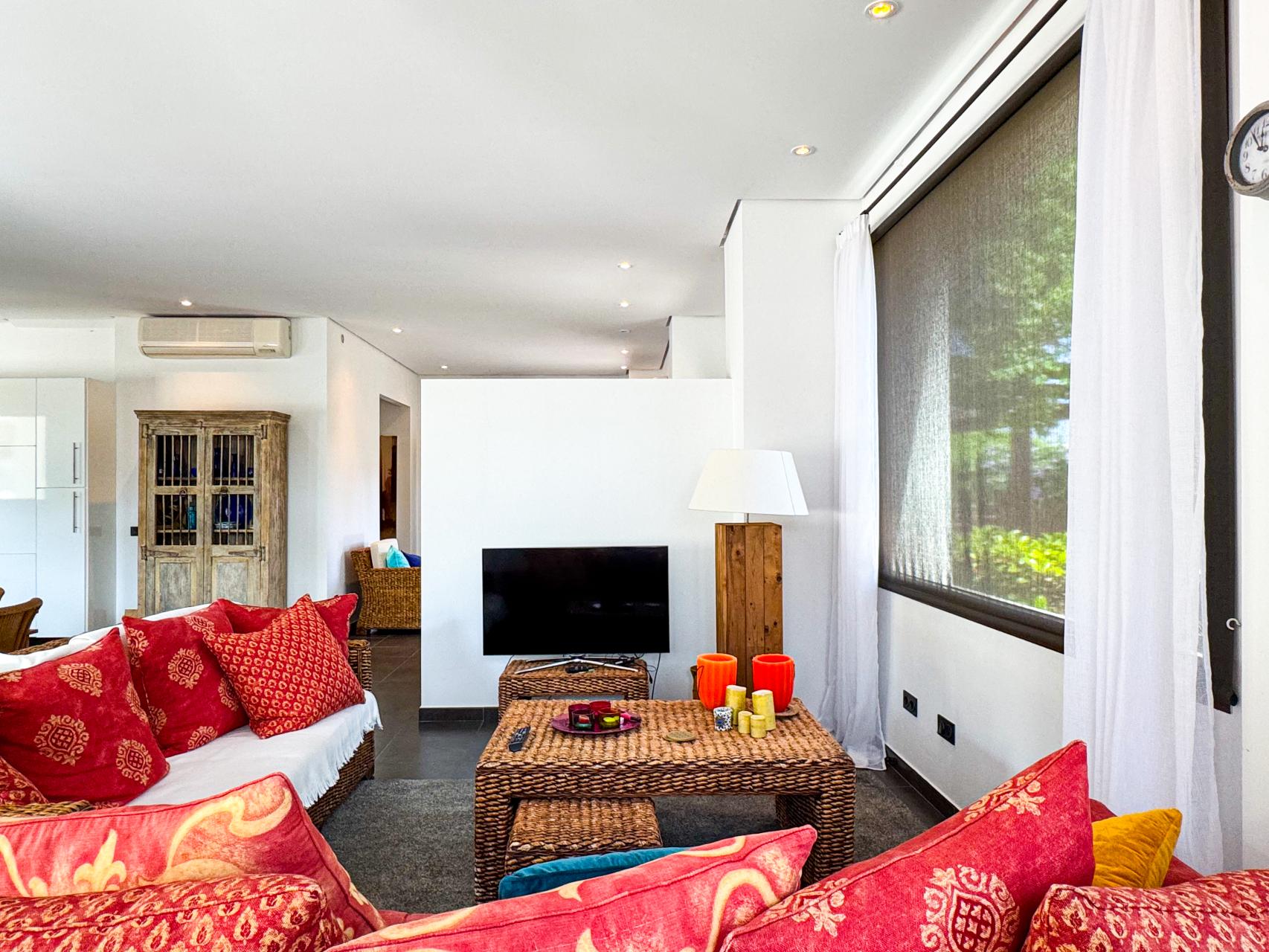 The villa has a warm and timeless design with soft off-white façades and elegant wooden accents. Although semi-detached, it feels like a fully detached property thanks to its clever layout and generous plot. Inside, you’ll find bright living spaces, double-height ceilings and direct access to several inviting terraces and the private pool.
