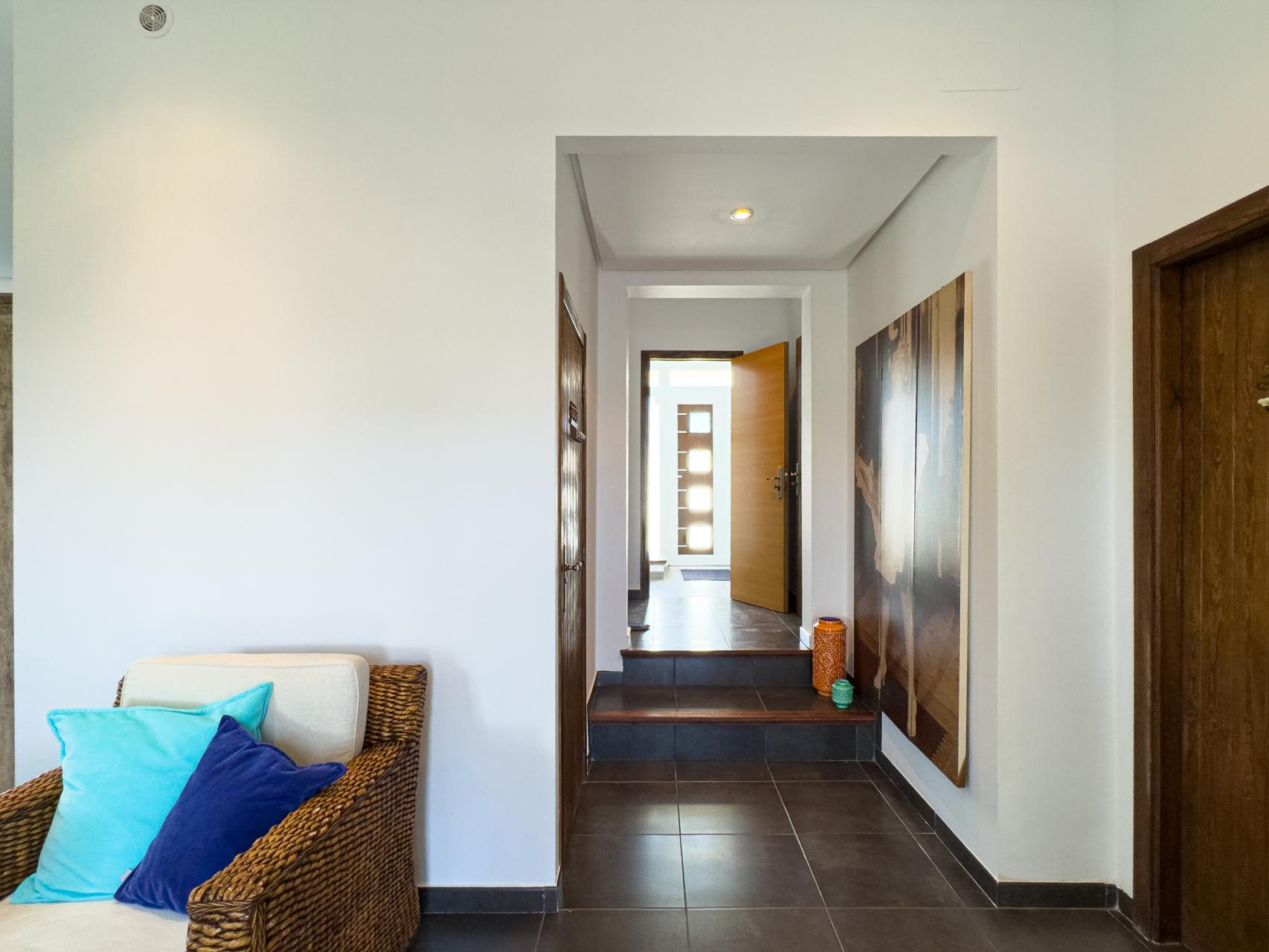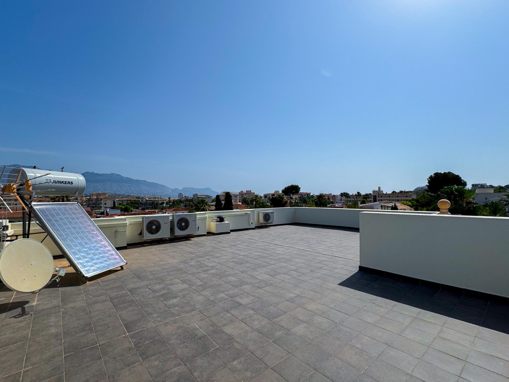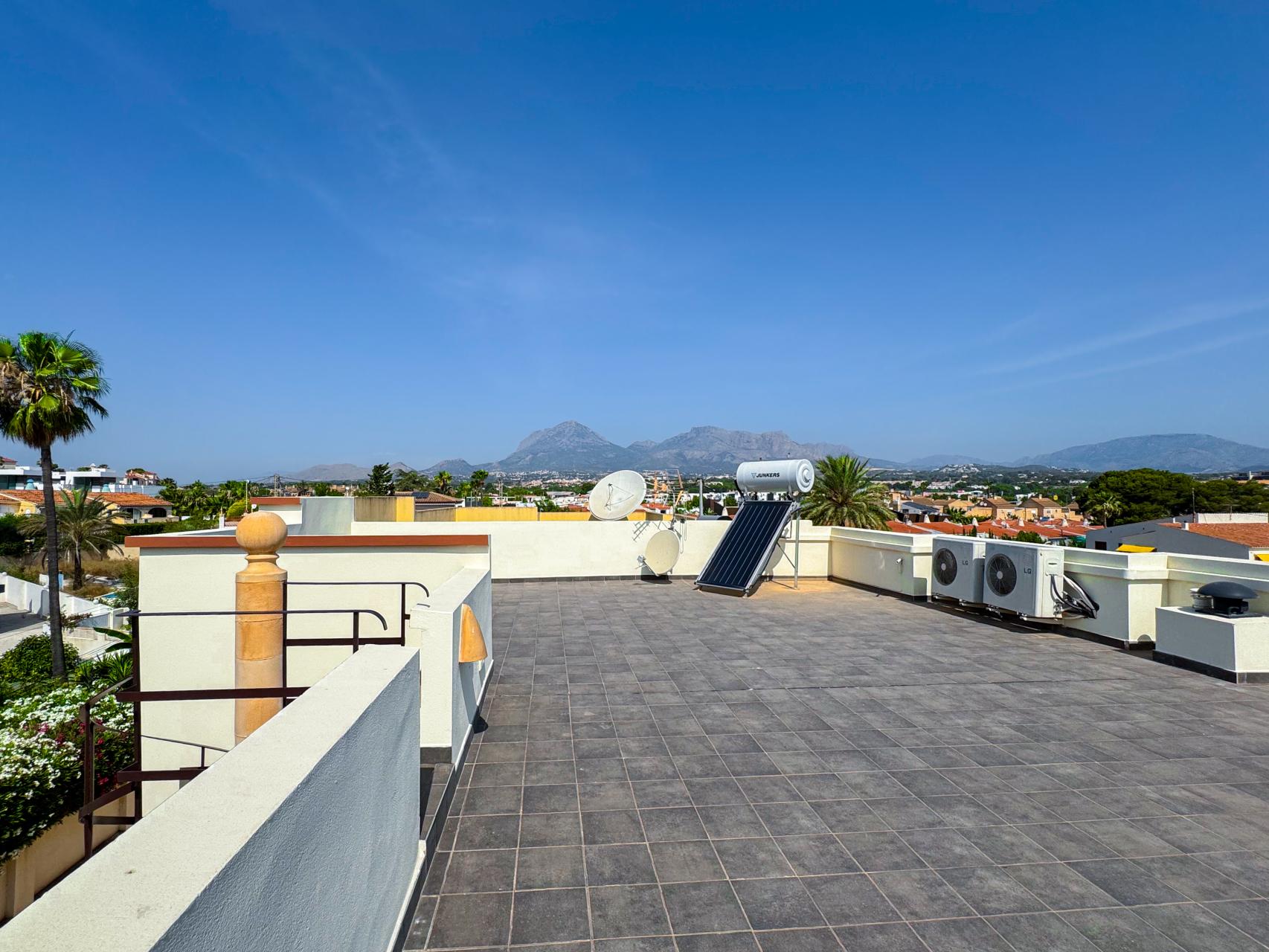 The upper floor offers four comfortable bedrooms. On the ground floor there is an additional multifunctional room, perfect for guests, a home office or hobby space. The rooftop terrace offers beautiful views of Sierra Bernia, Sierra Helada and the iconic blue dome of Altea.