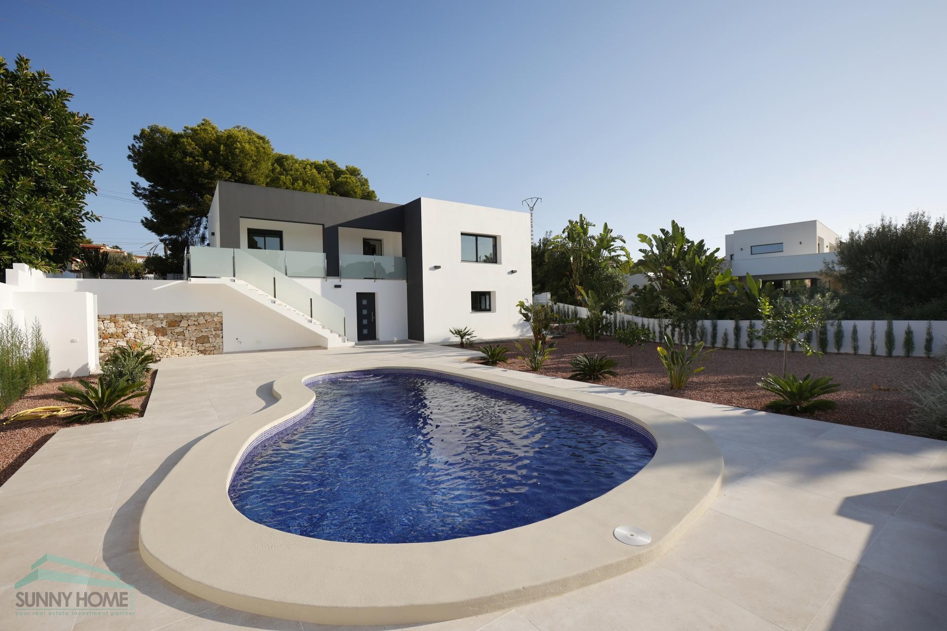 Gelegen in Los Pinos, Calpe, biedt deze woning privacy, kwaliteitsbouw en modern comfort in een van de meest gewilde gebieden van de Costa Blanca - op slechts enkele minuten van de zee, diensten en recreatiegebieden.