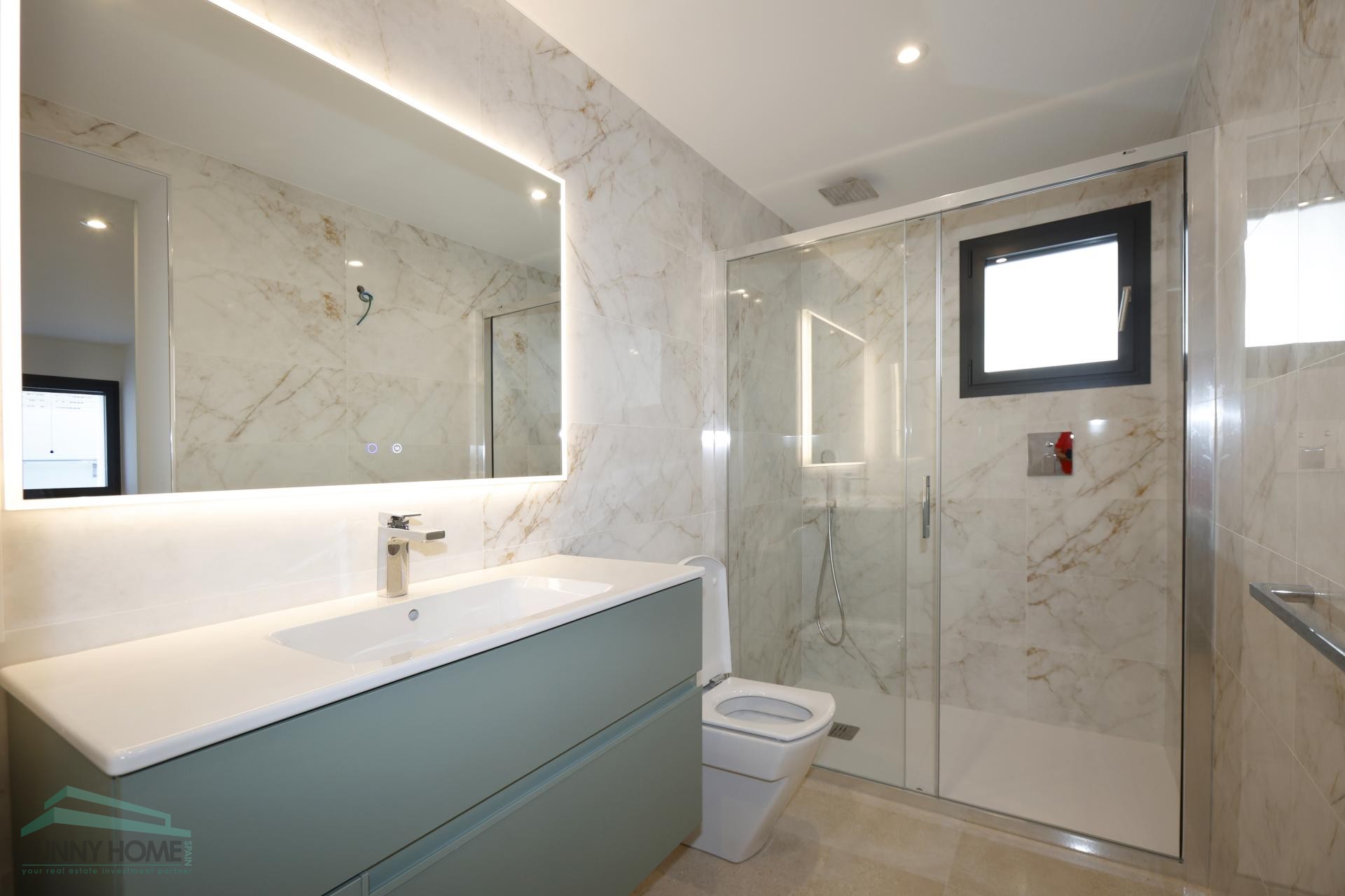 Moderne badkamers met glazen doucheschermen en badmeubels