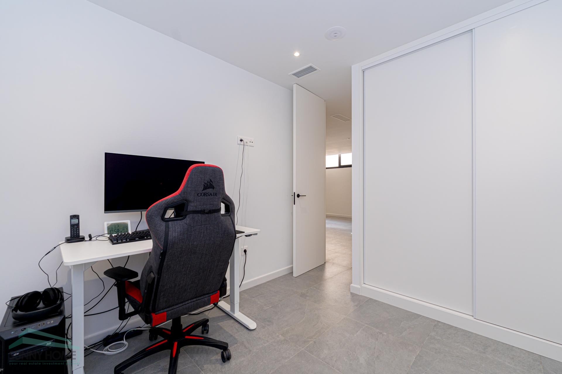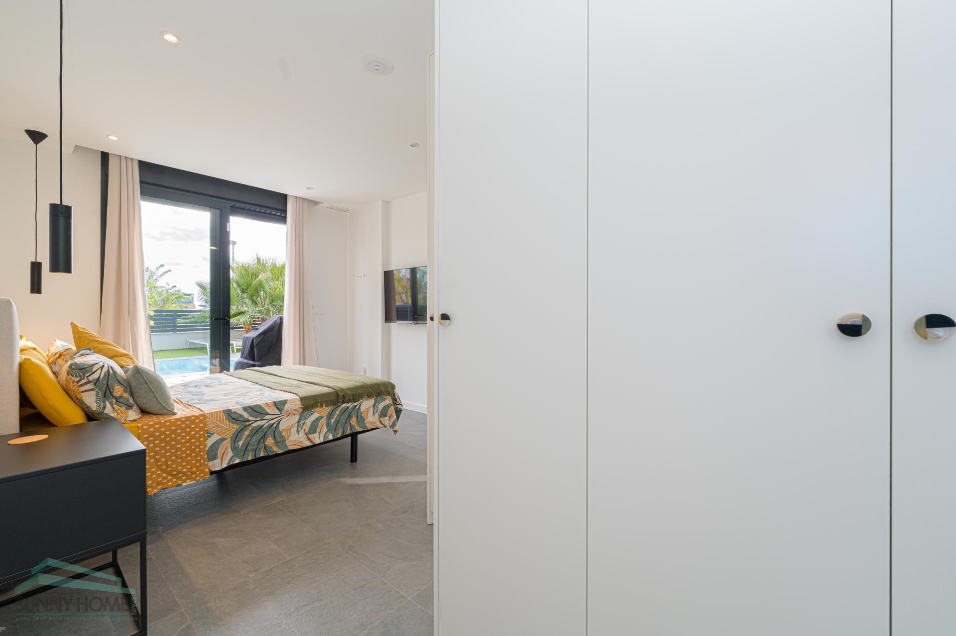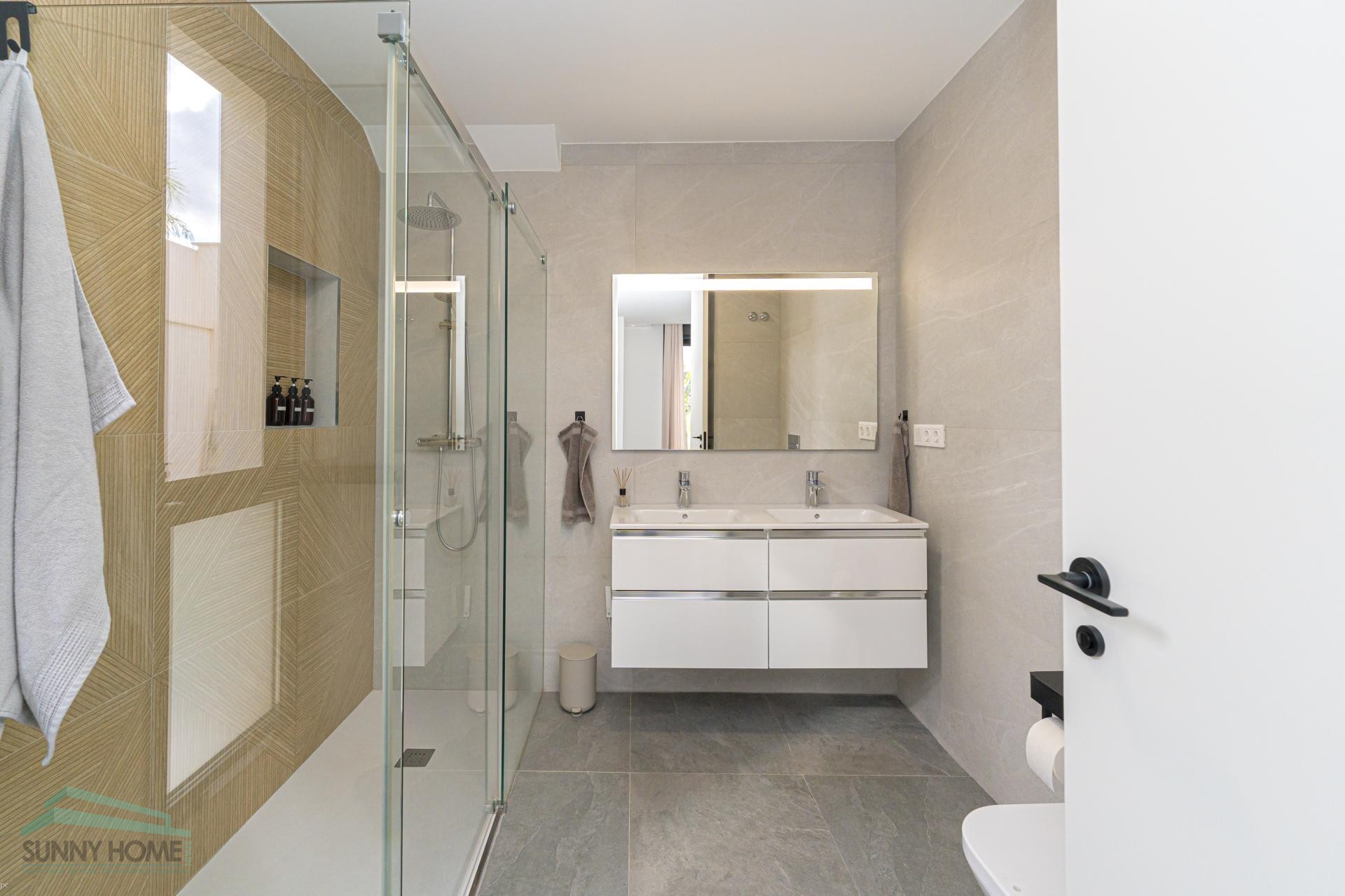 Binnen geniet u van een lichte woon- en eetkamer met open, volledig uitgeruste Amerikaanse keuken, vijf slaapkamers en drie badkamers. Dankzij de grote raampartijen baadt de villa in natuurlijk licht en heeft u een vrij uitzicht op de omgeving.