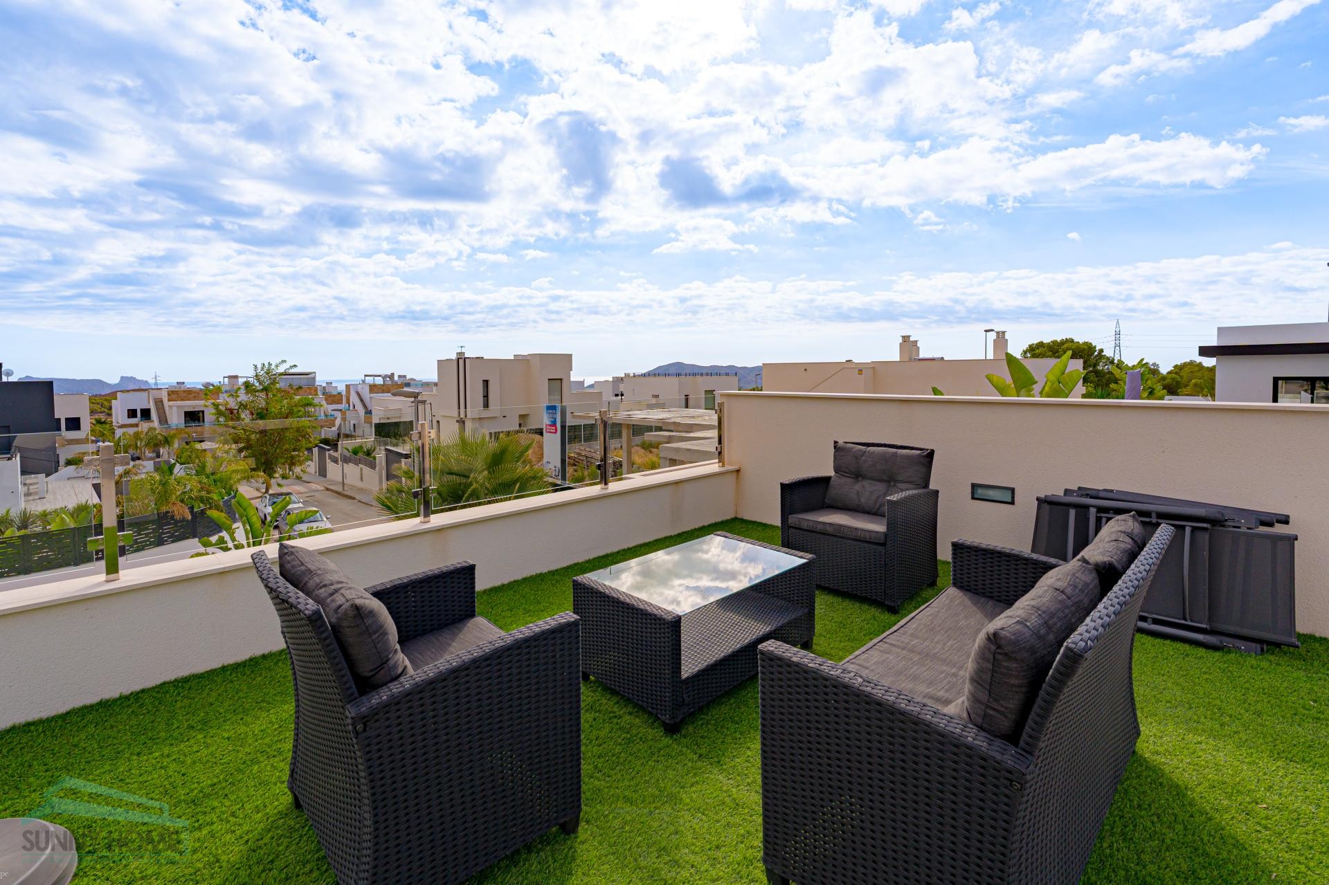 Ontdek deze moderne villa in een rustige urbanisatie van Polop de la Marina. Gebouwd in 2022 en perfect onderhouden, biedt deze woning ruimte, comfort en privacy.